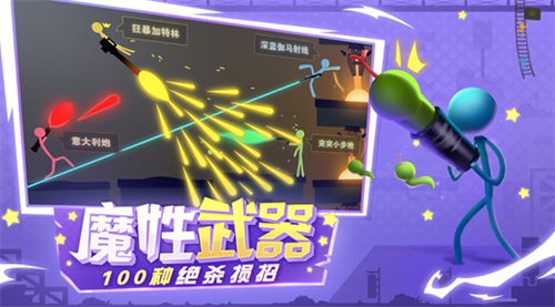 1、爆笑的火柴人画风搭配夸张魔性的动作,角色被击中时会像纸片一样飞出去,特效劲爆如绚烂烟花般炸开,带来极好的视觉效应,让人忍俊不禁;