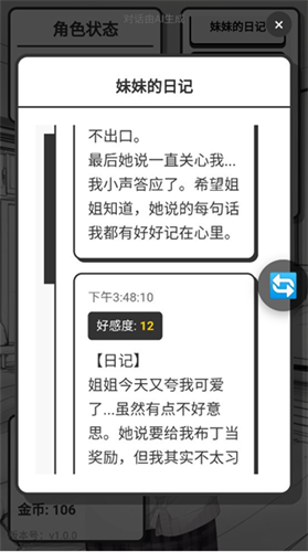 4、玩家还可以在【妹妹的日记】来观察yuki的心理变化
