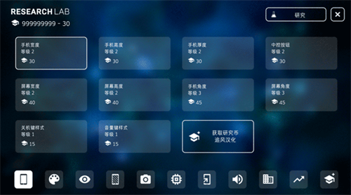 1、手机设计:游戏的手机设计功能参数非常多,有长宽和手机厚度、屏幕大小、屏占比、home键风格及位置、手机外观、按键位置、前置相机、后置相机、颜色、屏幕类型及分辨率、CPU、内存、存储……随着科技发展还能研发更多东西