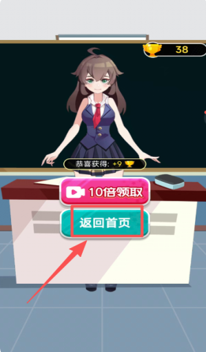 4、完成课程后,界面显示获得 + 9 奖励,提供 “10 倍领取” 和 “返回首页” 按钮,右上角显示当前积分 38。