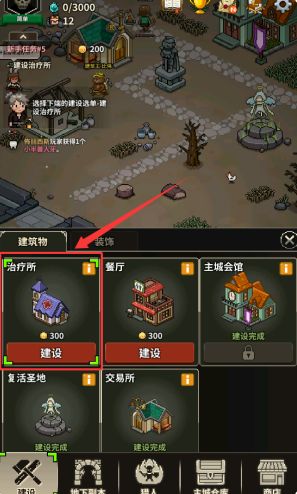 1、点击红框标注的建设按钮,选择治疗所开始建造。