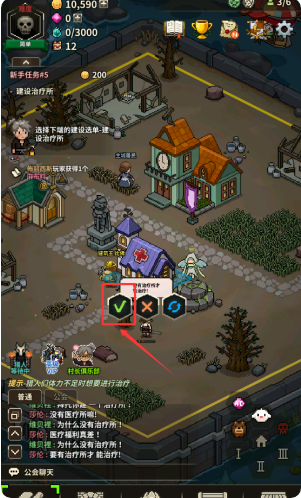 2、点击【小人物】图标,可看到任务要求,选择建设选单,建设治疗所,