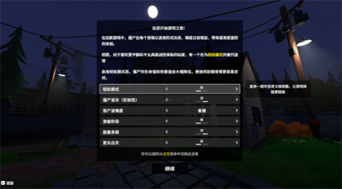 5、进入游戏,玩家可以先选择游戏的一些参数,可以选择游戏的难度,僵尸的波次等设置。