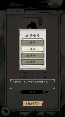 1、在下载并安装好大侠式人生重制版后打开游戏,点击“开始游戏”进行游玩。