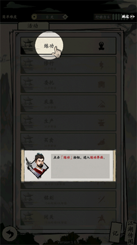 6、跟随教程指引了解游戏玩法和机制,随后开始你的江湖人生吧。