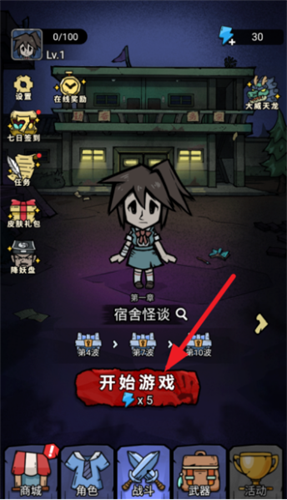 1、首先在下载并安装诡事怪谈抖音小游戏破解版,安装完成后打开游戏进入到主界面。