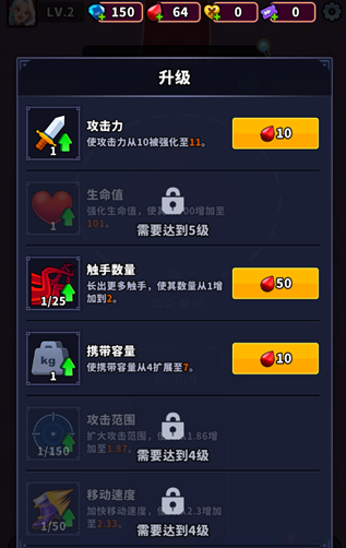 3、消灭敌人可获得血滴资源,用于强化各项能力。
