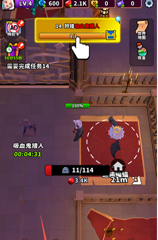 2、当接近敌对目标时,角色会自动伸展触须吸取鲜血。