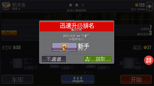 4、生存挑战:玩家需在有限的时间内尽可能多地消灭僵尸、躲避障碍物并收集奖励,以获取更高的分数和排名。