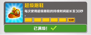 增加角色的弹跳能力,可以跳跃更高更远,在空中停滞的时间更长,不过落地时间很难掌握,使用该道具可以跳上火车,同时也可以在洞口处跳到墙上自杀。不过劝诫新手朋友不要过多使用,一时恍惚做出了错误判断就可能导致游戏结束,然而对于高玩们来说,这却是一款不折不扣的神器,凭借超级运动鞋可省去细微的费神操作,效率提升也十分明显。