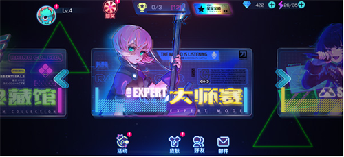 当达人们打开游戏后,向左滑动就能看到【大师赛】玩法啦!进入【大师赛】后即可到达曲目挑战环节,达人们在这里可以选择自己喜欢的曲目进行挑战哦,不过也要注意挑战次数是有限的呢,
