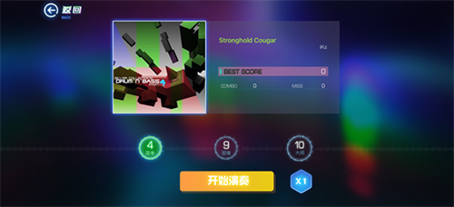 在点击想要挑战的曲目后,界面如下图所示。在这个界面中达人们可以自行选择X1-X5的倍速哦,当然难度也是从“简单-困难-大师”逐级递增的啦!点击“开始演奏”并对旁边的速度按钮进行调整之后就可以开启专属于你的音乐之旅啦。