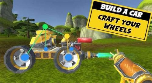 2、可驾驶亲手打造的汽车在场景中自由驰骋,探寻隐藏的宝藏与任务。
