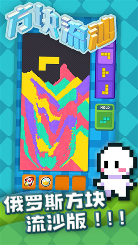 一开始它近乎于俄罗斯方块一样,能够旋转、挪动和下落,当下落到最底下的一瞬间,方块变成了流沙一样散落下来,就这样,一块块的流沙方块堆叠在一起。游戏得分的方式是尽量将同颜色的流沙连接至一层,这样就能获取更多分数,冲上排行榜!感兴趣的小伙伴们快来挑战吧!