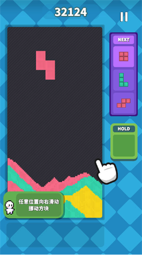 2、在任意位置向右滑动可以挪动方块。