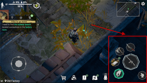 2、右侧的这些按键包含了各种互动按键,比如拾取、蹲下,还有各种武器的攻击按键。