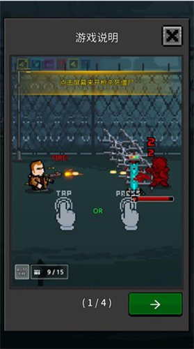 1、轻触屏幕即可开火,击败僵尸敌人。