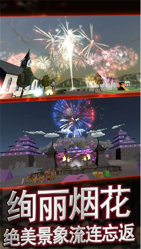 3、支持多达6个不同的角度拍摄烟花表演,让玩家可以从各个角度欣赏到烟花的美丽和壮观。