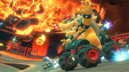 轨道滑行是《马里奥赛车 世界》的新功能,玩家在滑行时可以通过R键或ZR键做出特技动作,释放积累的加速能量。滑行时,左摇杆的方向决定了跳跃的方向,但如果你将左摇杆指向正前方,则无需移动即可完成特技。
