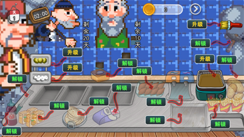 2、升级店铺可以消耗金币升级各种各样的东西,包括店铺设备和食谱。
