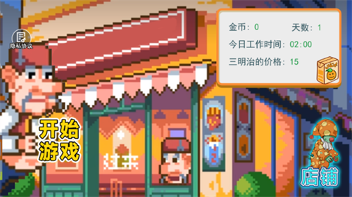 1、点击进入游戏,可以看到今天的营业信息和金币余额,选择升级店铺或者开始游戏。