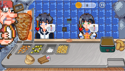 沙威玛像素小店最新版是由抢手游戏《沙威玛传奇》改编而来的模仿运营游戏,游戏采用了经典简练的像素风格进行二创,玩法上复原了原版的沙威玛传奇。你需要扮演一名沙威玛店的店主,为饥不择食的食客们制作甘旨的沙威玛卷饼,玩家只需要点击食材和拖动东西就可以制作沙威玛卖给顾客,然后获得钱币收入,同时玩家可以用赚到的钱币为店肆购买新的食谱和设备,解锁更多的菜品或许提高烹饪的功率,服务更多顾客。沙威玛像素小店最新版的玩法和原版相同非常简略容易上手,不过玩家也要分配好晋级店肆的方向战略,优先提高增强烹饪功率的部分,这样才会拥有更好的游戏体会。
