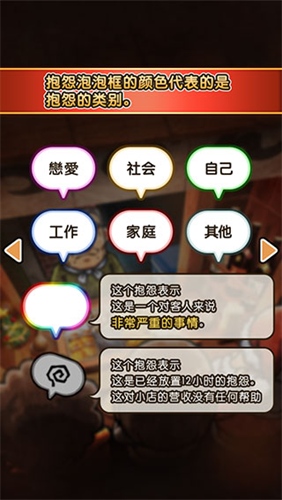简单的操作,轻松愉快的放置收集玩法,不需要浪费太多精力去思考攻略,你要做的只是跟随剧情进展,按照心意设置自己的经营方式。玩家只需点击收集客人的抱怨泡泡框,就可以让客人对你敞开心扉,治愈内心伤痛这件事,倾诉是最好的解药。