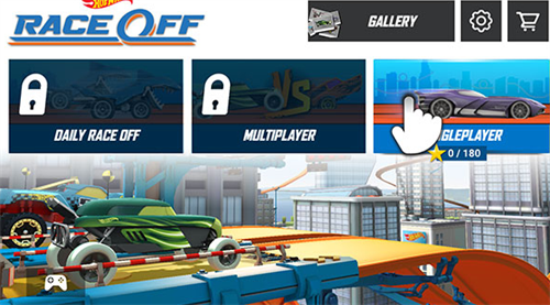 1、进入风火轮赛车游戏最新版,可以看到有三种模式可以选择,目前头两个还没解锁,因此先点击最后一个模式进行游玩。