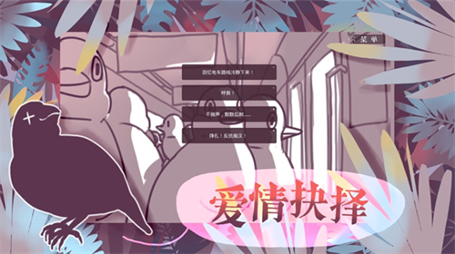 文鸟爱情物语官方版不仅为玩家打造了丰富的场景以及剧情内容,在游戏中玩家将会在电车、客厅等场景中遭受一系列事件,一起还有多种剧情选项自在选择,玩家做的每一个选择都将影响结局的走向,此外还有多周目以及海量结局等你来探索发现!