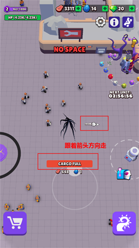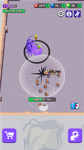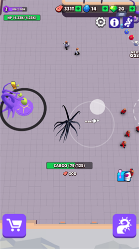 靠近敌人身边会迅速消耗它们的血量,杀死敌人后会把敌人装进背包。