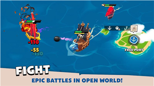 战斗机制:接近敌船时,角色会自动开火,展开激烈对抗。