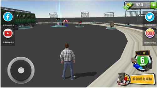 其次在游戏过程中,左侧按键是控制车轮方向,右侧是控制轮子前进。其中主要的是玩家将通过左侧按键来控制车轮别让它滑出跑道。