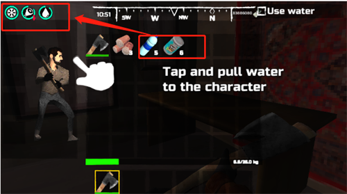 4、游戏内除了寒冷度外,我们还需要控制角色保持良好的水量和食物;
