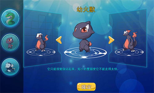 1、首先我们第一次进入游戏的时候,系统会赠送我们一只初始精灵,我们从三只里面挑选一只自己喜欢的点击确定即可。