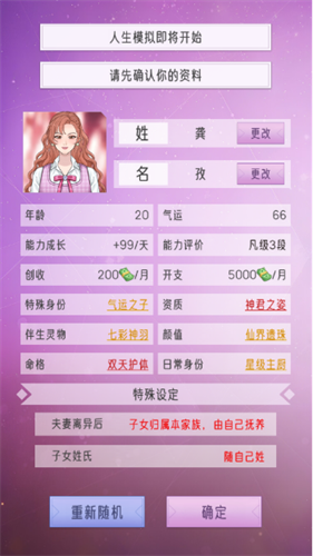 2、提供了丰富的角色自定义功能,家主的性别、形象、天赋属性都会对家族的起步产生深远影响。