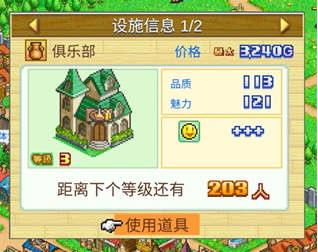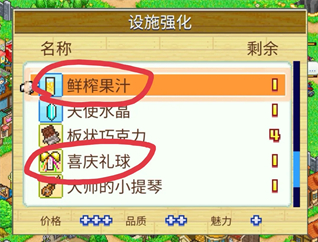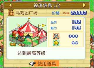 注意:先用道具加价格和魅力,以下两个道具基本上用于设施效果都不错