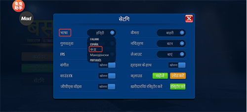 1、进入终极巴士模拟器印度中文版游戏内我们需要先将语言修改为简体中文,这里选择第三个选项。
