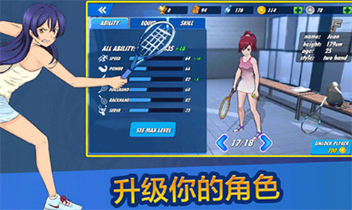 女子网球联盟安卓中文版游戏特色