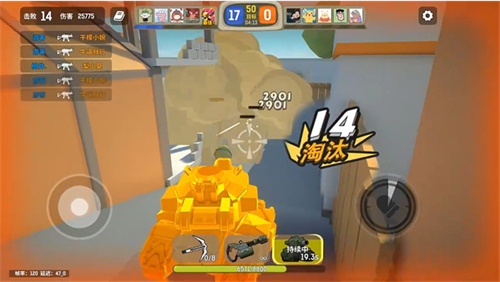 对局中屏幕上方可以使用角色专属技能,比如嘎嘎鸭的自动瞄准目镜。