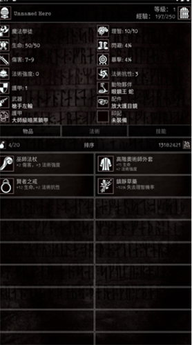 装备:橡木法杖(法术加成)+ 布甲(轻量化)+ 智慧项链(蓝量+理智回复),优先法术强度装备。