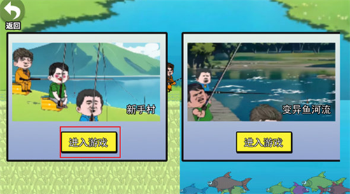 2、选择钓鱼场景,可以从新手村开始挑战,点击【进入游戏】按钮即可;