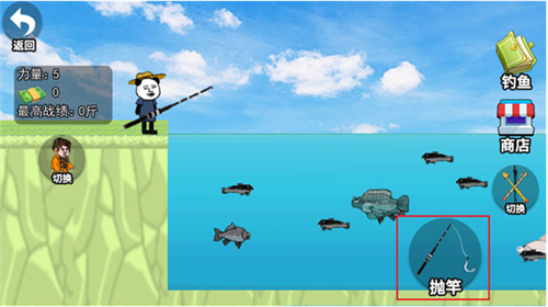 3、点击屏幕右下角的【抛竿】按钮,将自己的鱼饵投入到水中;
