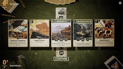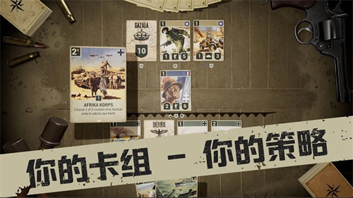 你需要从二战中的五个主要阵营中选择一个来打造自己的卡组并与其他玩家进行对抗。每个卡组都可添加一个盟国,你可以从盟国获得支援,进而取得战略上的优势。