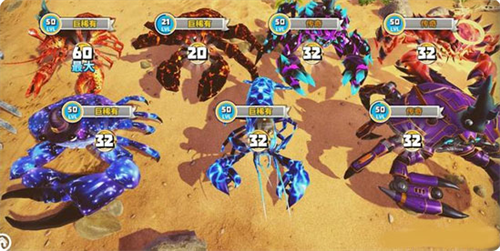 1、螃蟹种类设计多样,每一种外形与能力各具特点,在对抗中展现不同优势;