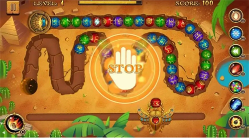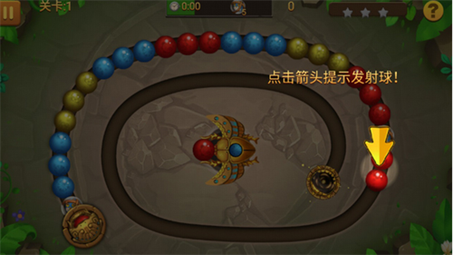 1、点击“开始”控制发射装置瞄准前进中的石球链条,完成颜色匹配进行消除;