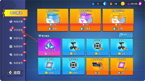 2、在商城左侧菜单栏,找到并点击【太空宝箱】选项,进入宝箱抽取界面。