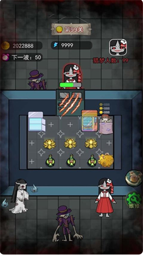 4、鬼怪特性区分明显,普通鬼怪正面冲击门板,穿墙鬼绕开炮台直扑床铺,需针对性调整炮台朝向。