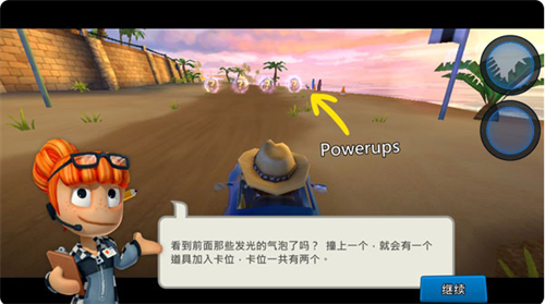 在玩家看到前面这些发光的气泡,便可迎头撞上,此时就会出现一个道具加入卡位,卡位呢一共有两个,在等到道具加载完成后,点击获取使用,即可。
