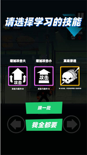 2、当你每闯一关成功后,还可解锁三项学习技能升级属性