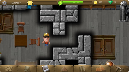 5、跟随着游戏中的目标开始挖走场景中所有阻挡我们前进的障碍物;